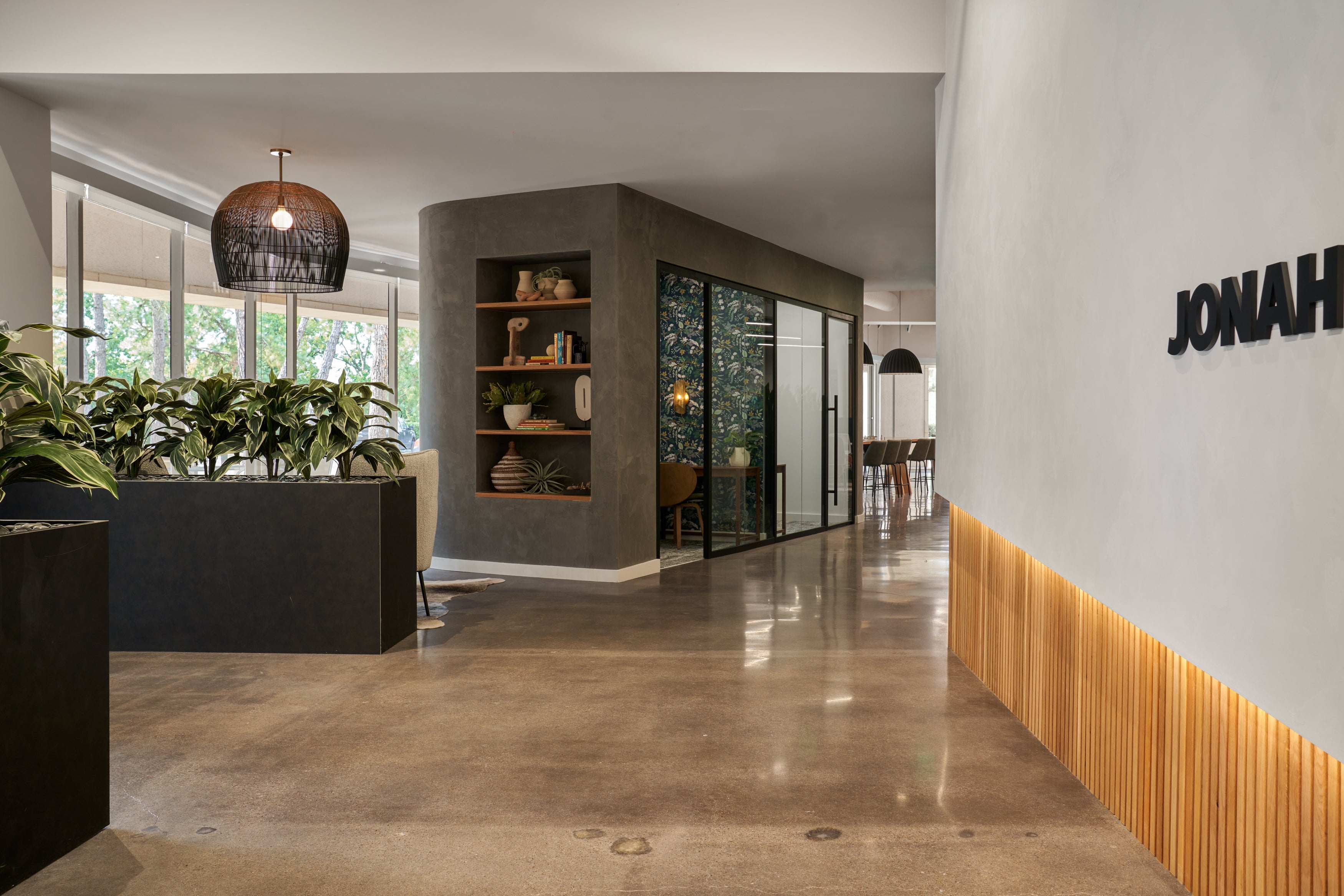 Crafted for Jonah Digital, a local branding agency, this space transcended even our original renderings. The client sought a comfortable, collaborative workspace that not only reflected their unique brand and culture but also optimized their workflow. The end result was so distinctively aligned with their identity that it reinforced why they're experts in branding. Collaborating with this dynamic team was a pleasure, and witnessing their success in Westlake inspired us to make the move to Solana Plaza and design our own studio!