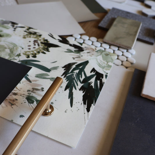 You will receive a pdf that includes a whole house design presentation, finish selections for each room, a detailed spreadsheet with specs of each finish including locations and contacts to purchase these items, and a physical sample box including each finish.