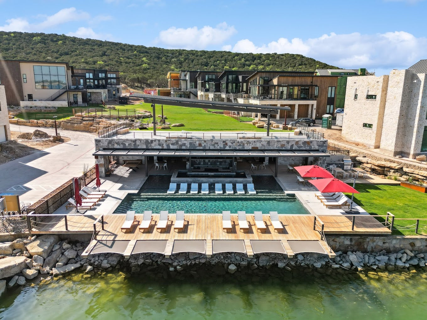 BRNS loved being a part of this incredible modern development and assisting in the architectural vision around Possum Kingdom Lake. This project features 30 new homes and a luxury amenity building overlooking the pool and lake, all designed with a very modern aesthetic that seamlessly integrates stone, metal, and breathtaking lake house views.As the architect for each home, we ensured that every residence offers unparalleled comfort and style while harmonizing with the natural surroundings. Additionally, we established CCR guidelines for the community, fostering a cohesive and elegant environment that enhances the overall living experience.The luxury amenity building serves as the heart of the community, providing a sophisticated space for relaxation and socialization, all with stunning vistas of the pool and lake.