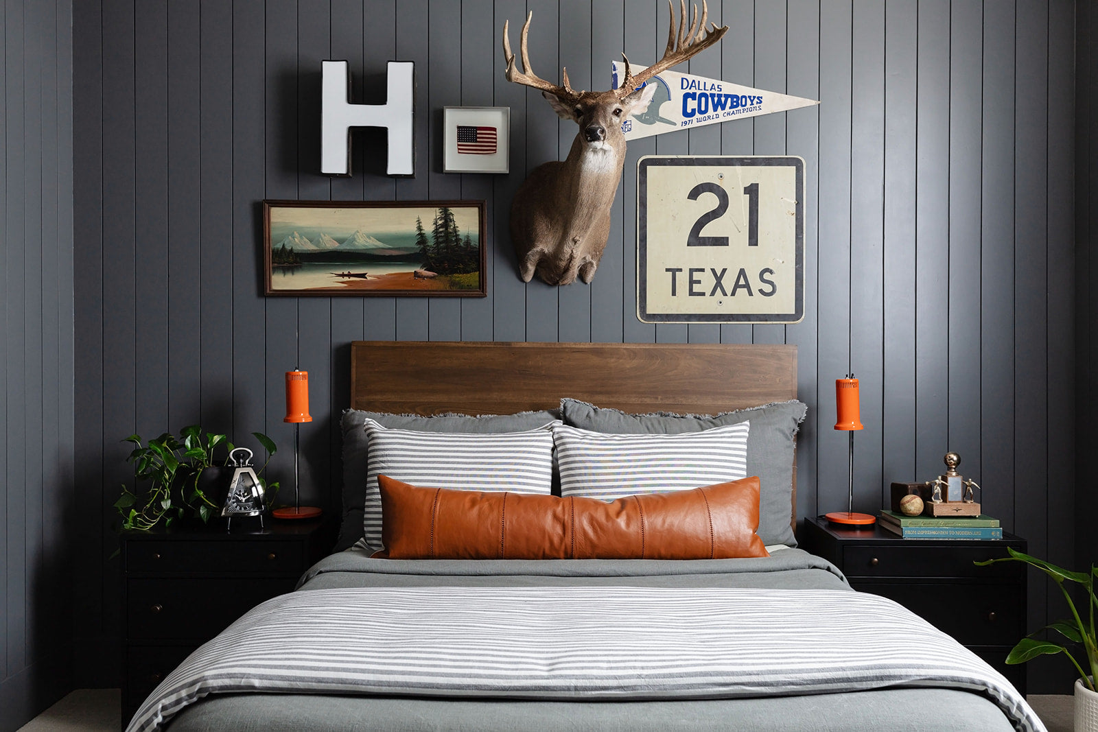 Our client sought a space as unique as their teen, and we delivered a bedroom bursting with personality in every corner. This cozy haven features dark painted paneling and boasts unique finishing touches sourced by our Find & Favor team, from vintage wall art to one-of-a-kind accessories. Just one of many projects for this family, this space sets the tone for future collaborations, ensuring each one is as distinct and memorable as the last.