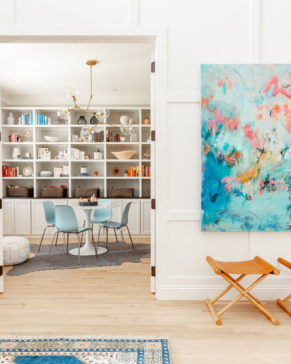 This full home remodel brought lots of character and color to every corner. We designed a fun homeschool room, added vibrant wallpaper in the dining room, and incorporated texture and brass details throughout. The result is an airy and fun space that perfectly blends style and functionality.